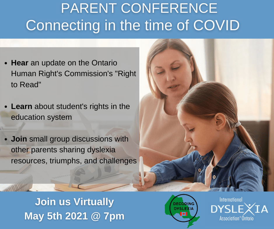 Register now for the IDA Ontario/Decoding Dyslexia Ontario 2021 parent conference. It’s all virtual and it’s free! Space is limited!